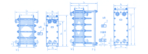 換熱面積板片數(shù)L1l2l3A1A2A3H1H2H3B1B2RaDN工作壓力